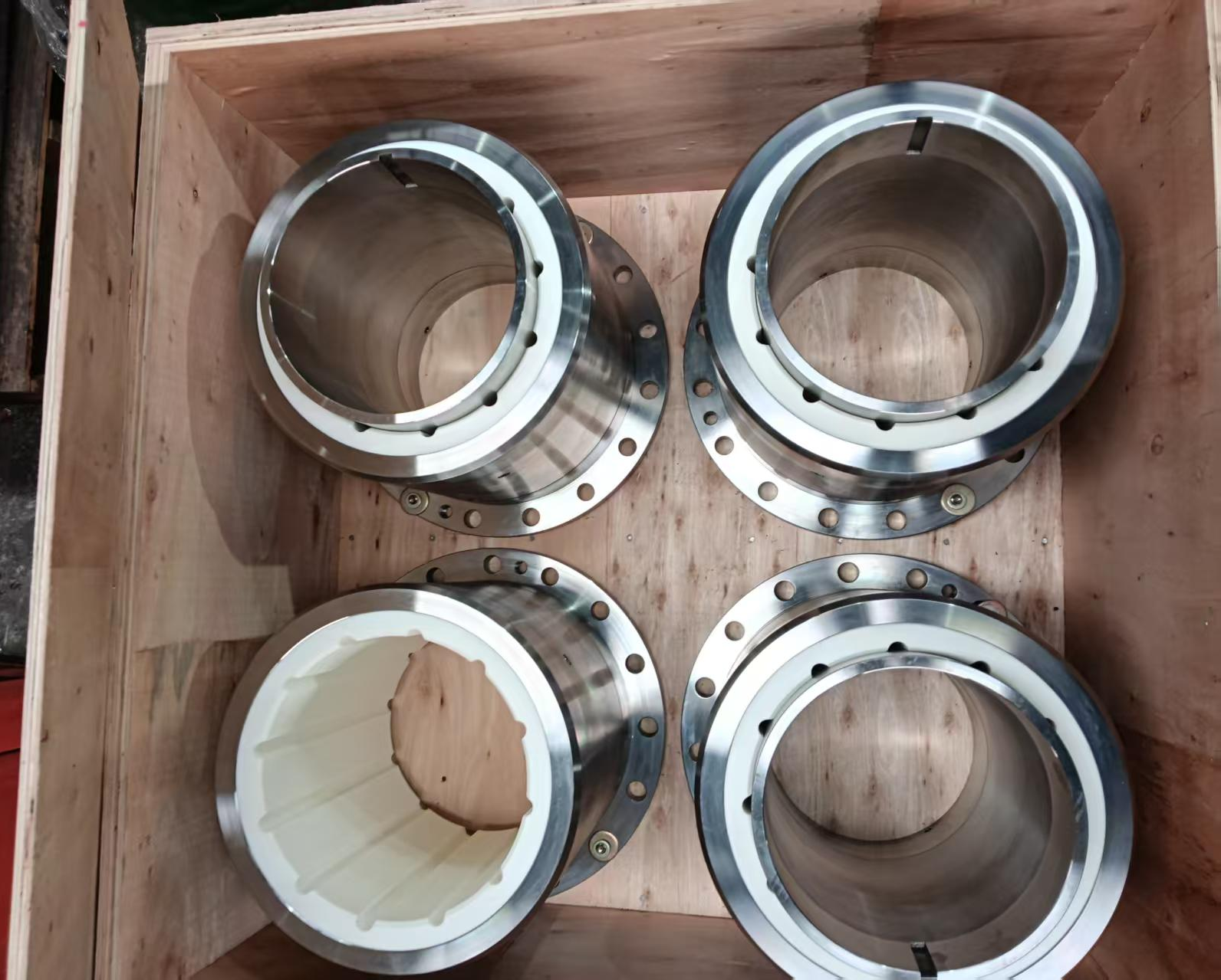 润滑机制:以清水 / 海水为唯一润滑介质,表面微孔与水分子形成动态水膜,启动即建立有效润滑。典型结构:多为轴瓦 / 衬套形式,常采用过盈配合 + 冷冻安装(液氮冷却)工艺。